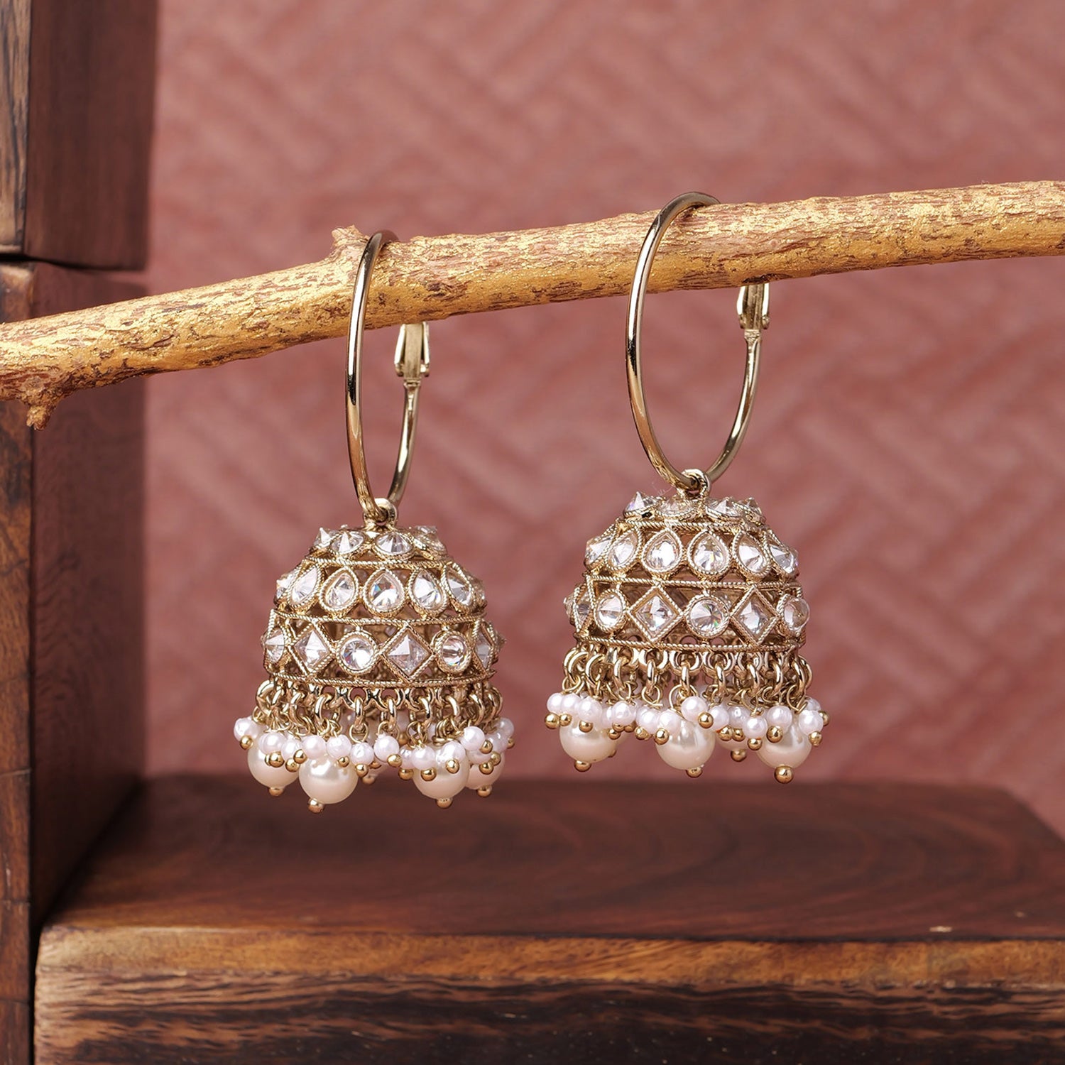 Rupal Two Hand Bangle Set in White and Antique Gold