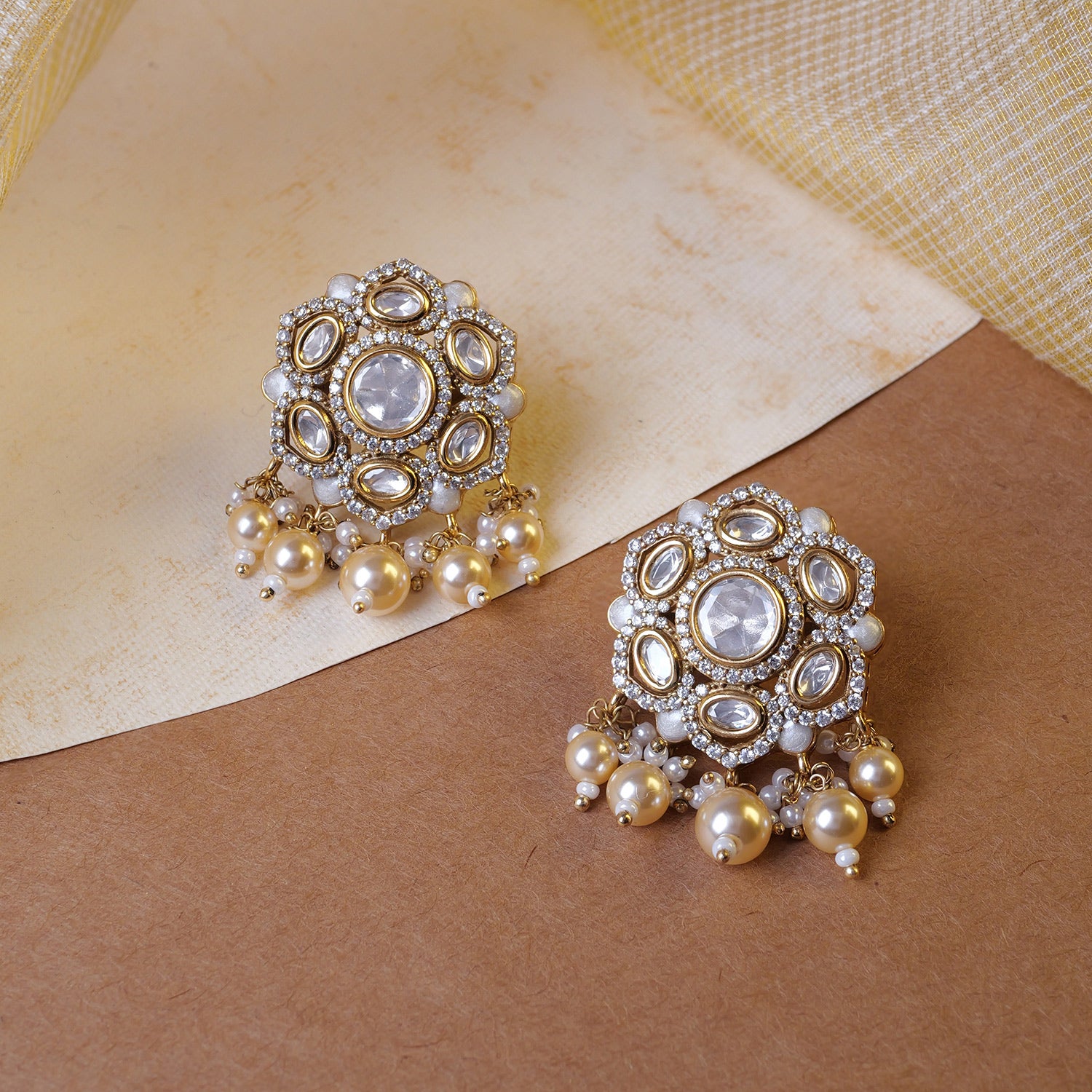 Nareen Jhumka Hoops in Pearl and Rhodium