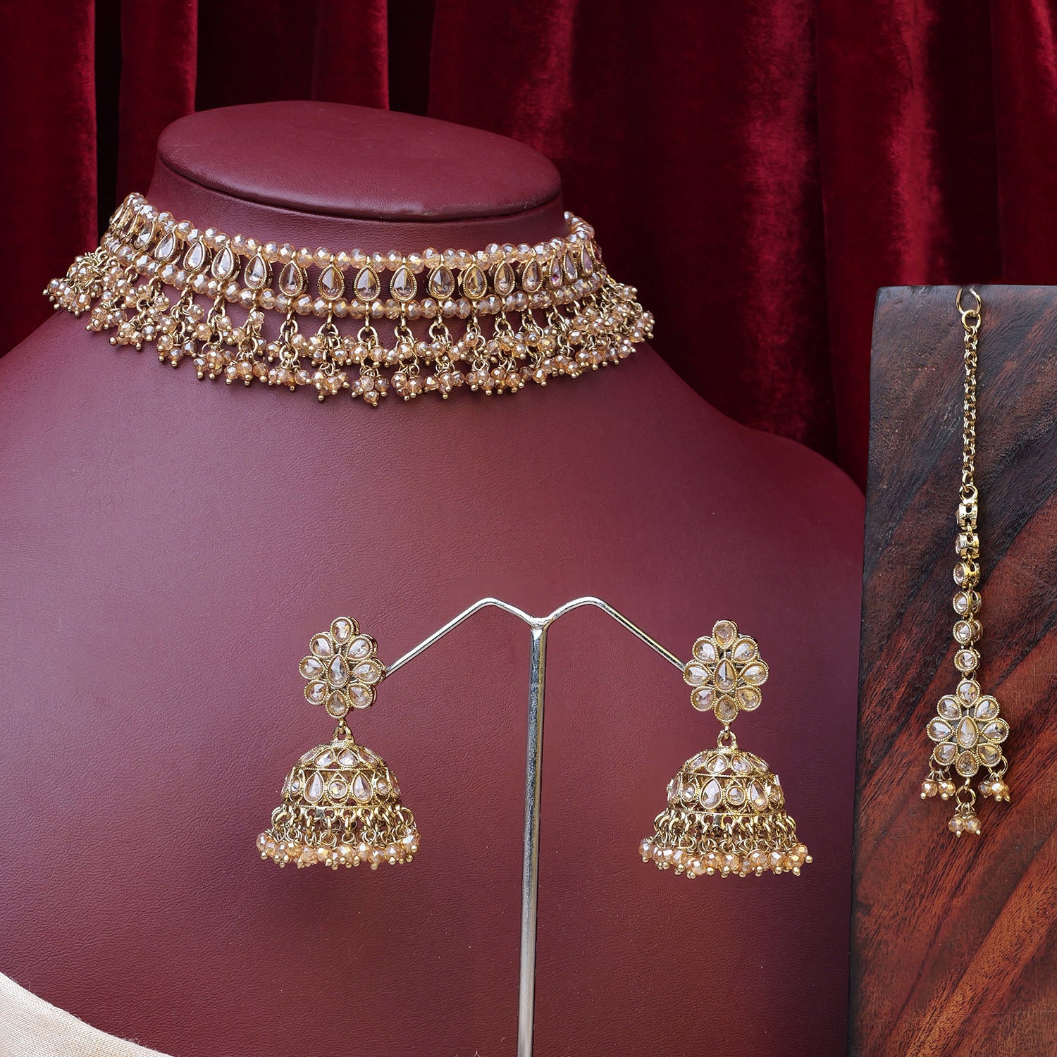 Zeenat Bridal Necklace Set in Pearl and Champagne