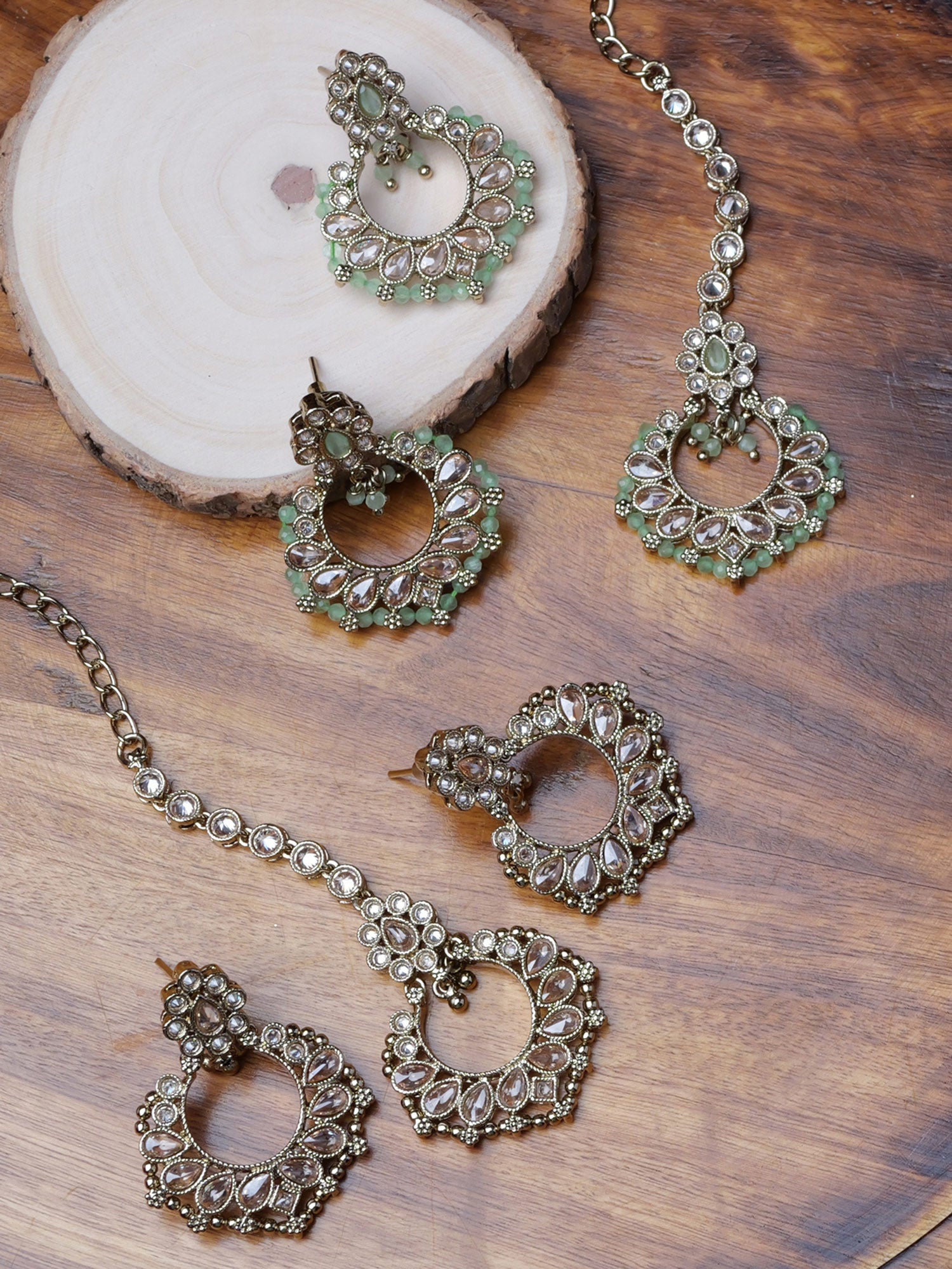 Sonal Pearl Maang Tikka in Green