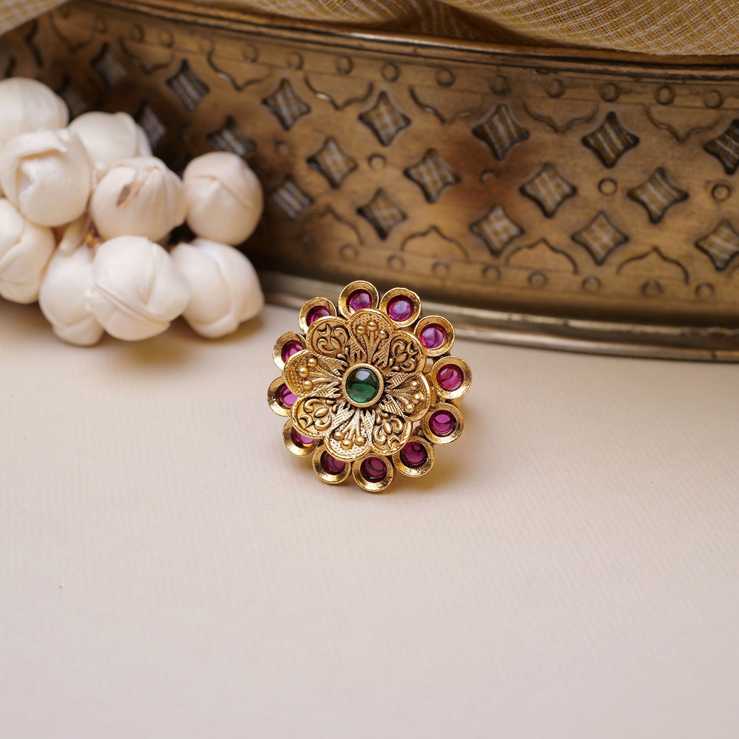 Rupal Two Hand Bangle Set in Green and Antique Gold