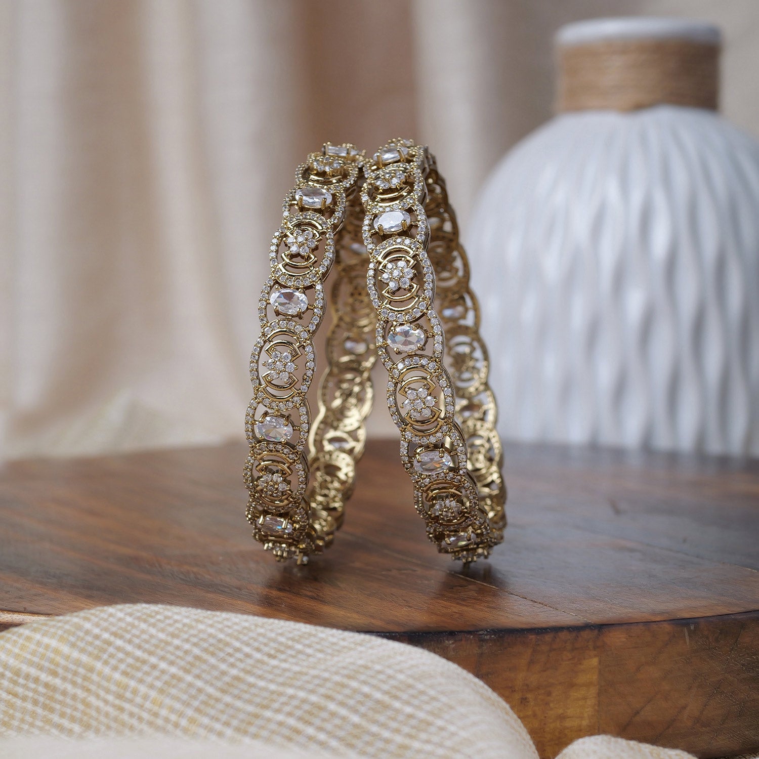 Rupal Two Hand Bangle Set in Yellow and Antique Gold