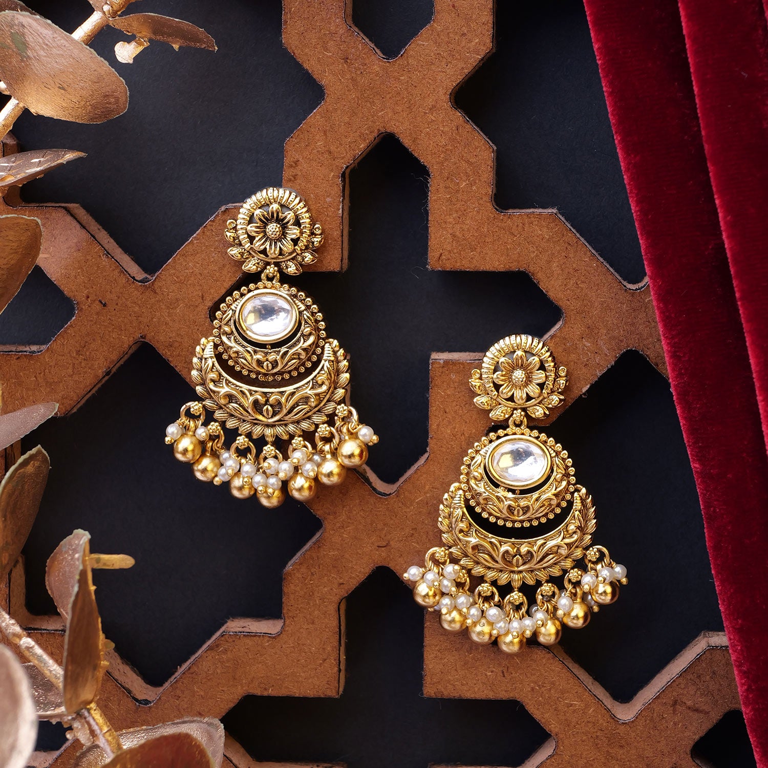 Layered Jhumka Ear Chains in Pearl and Champagne