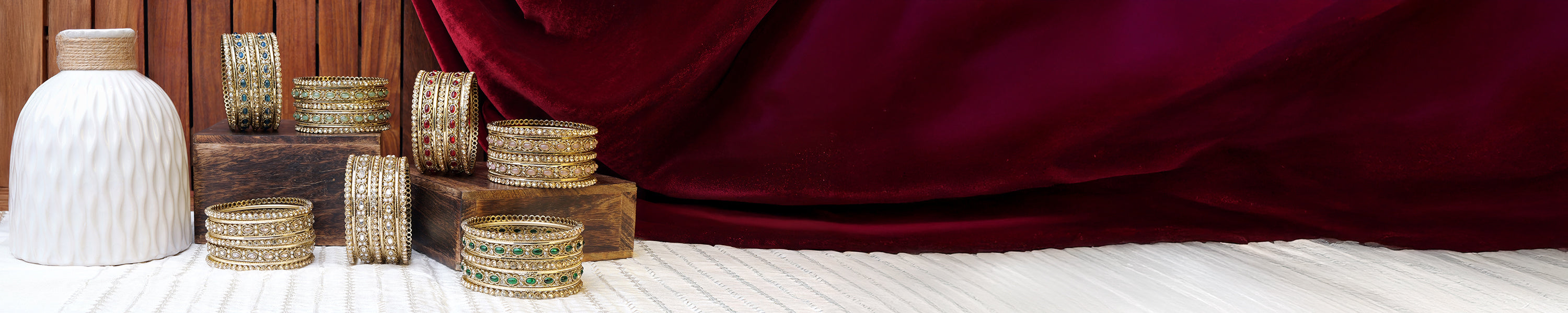 Alira Bangle Set in Maroon and Antique Gold
