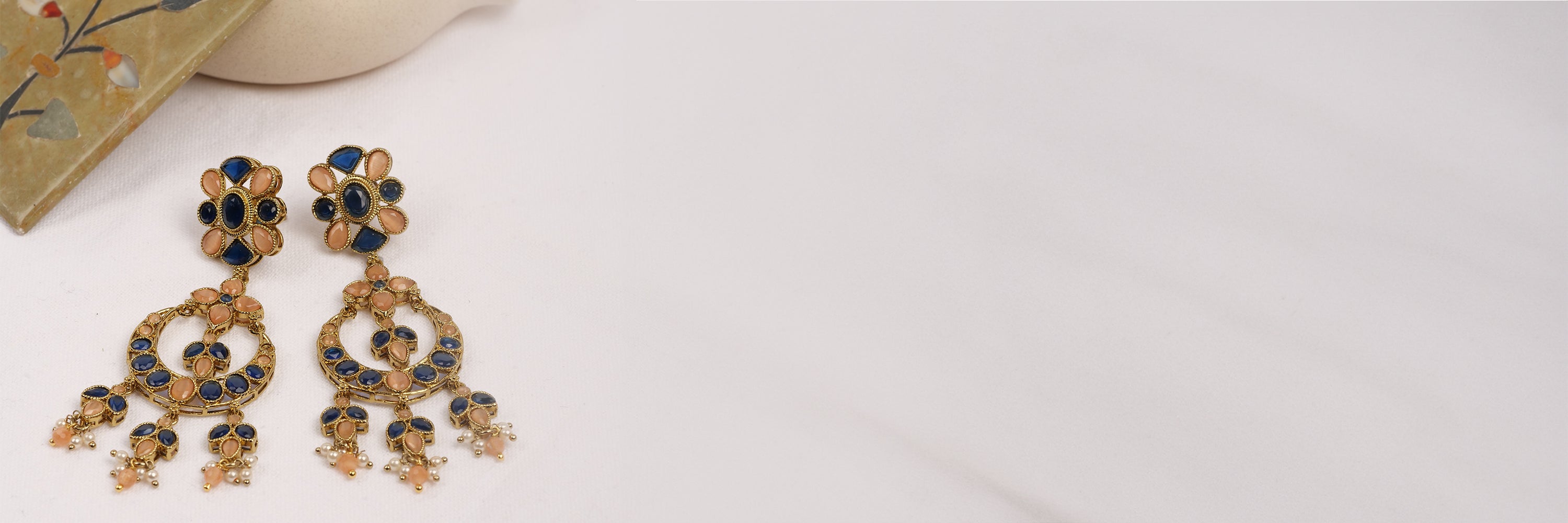 Sonam Statement Earrings in Champagne and Pearl